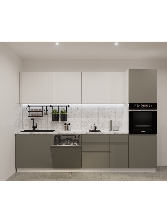 Кухонный гарнитур прямой «Лайн 16», 3000 мм, цвет тальки/обсидиан