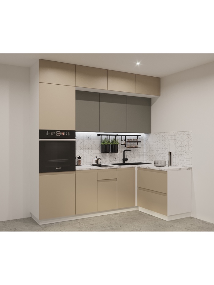 Кухонный гарнитур угловой до потолка «София», 3000×1800 мм, цвет кашемир/кашемир МДФ