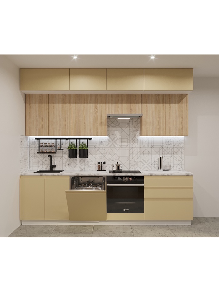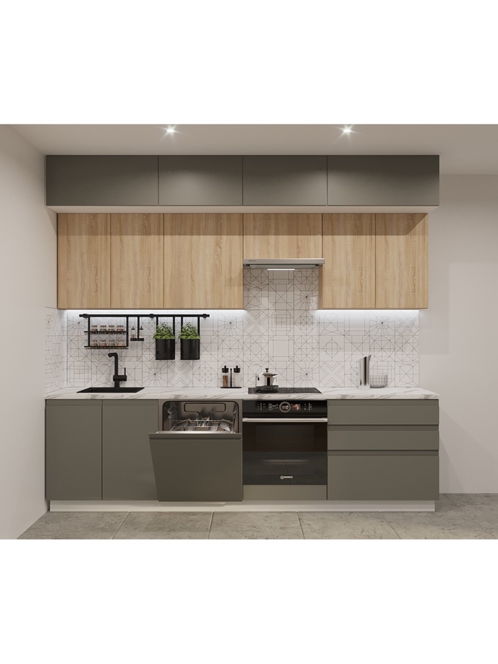 Кухонный гарнитур прямой трёхуровневый в потолок «Лайн 48», 2800 мм, цвет стамбул/дуб сонома