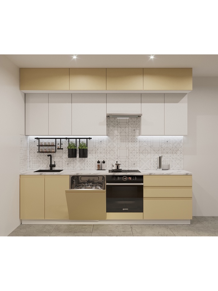 Кухонный гарнитур прямой трёхуровневый в потолок «Лайн 52», 3000 мм, цвет стамбул/тальк