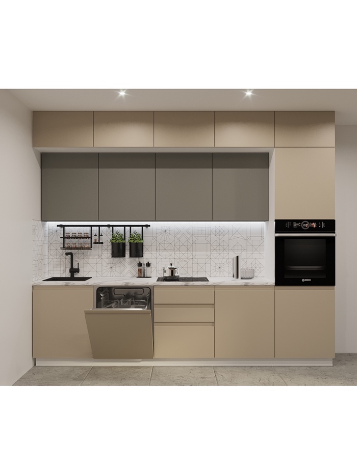 Кухонный гарнитур прямой трёхуровневый в потолок «Лайн 46», 2800 мм, цвет стамбул/тальк
