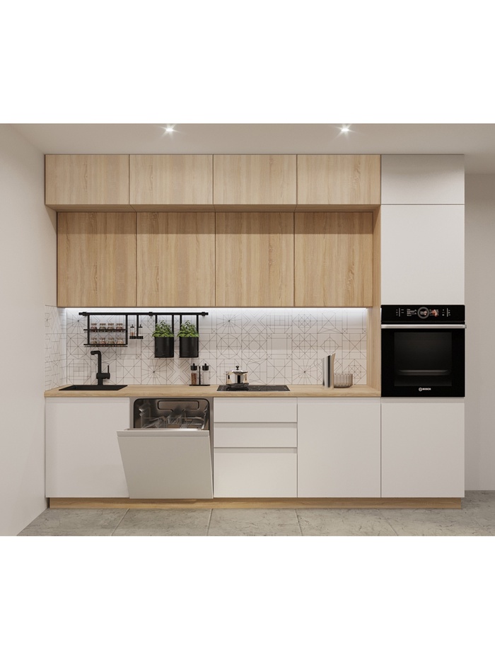 Кухонный гарнитур прямой трёхуровневый в потолок «Лайн 44», 2800 мм, цвет обсидиан/дуб сонома