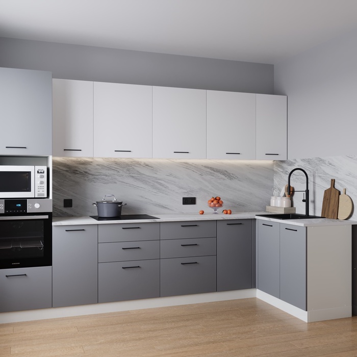 Кухонный гарнитур 3200х1400 мм ЛАТТЕ столешница Марквина белый 26мм