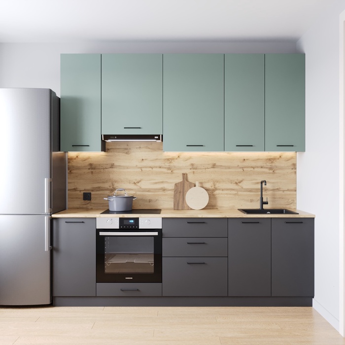 Кухонный гарнитур 2400х600 мм АНТРАЦИТ столешница Вотан 26мм