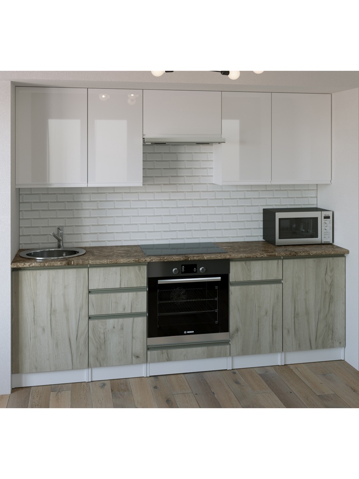Кухня под встраиваемую технику «Европа», 2400 мм, цвет серый крафт/дуб белый крафт