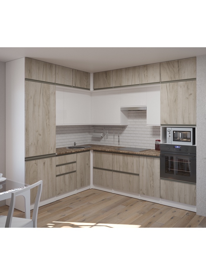 Кухня «Рио NEW», 2000 мм, цвет дуб крафт/антарес столешница