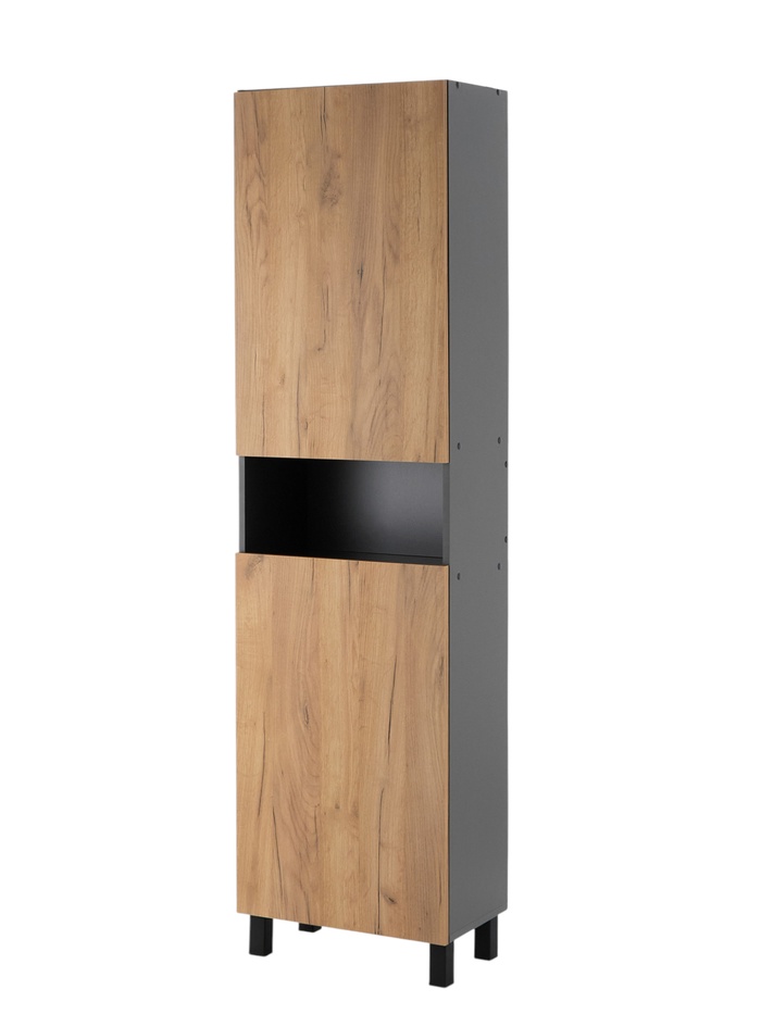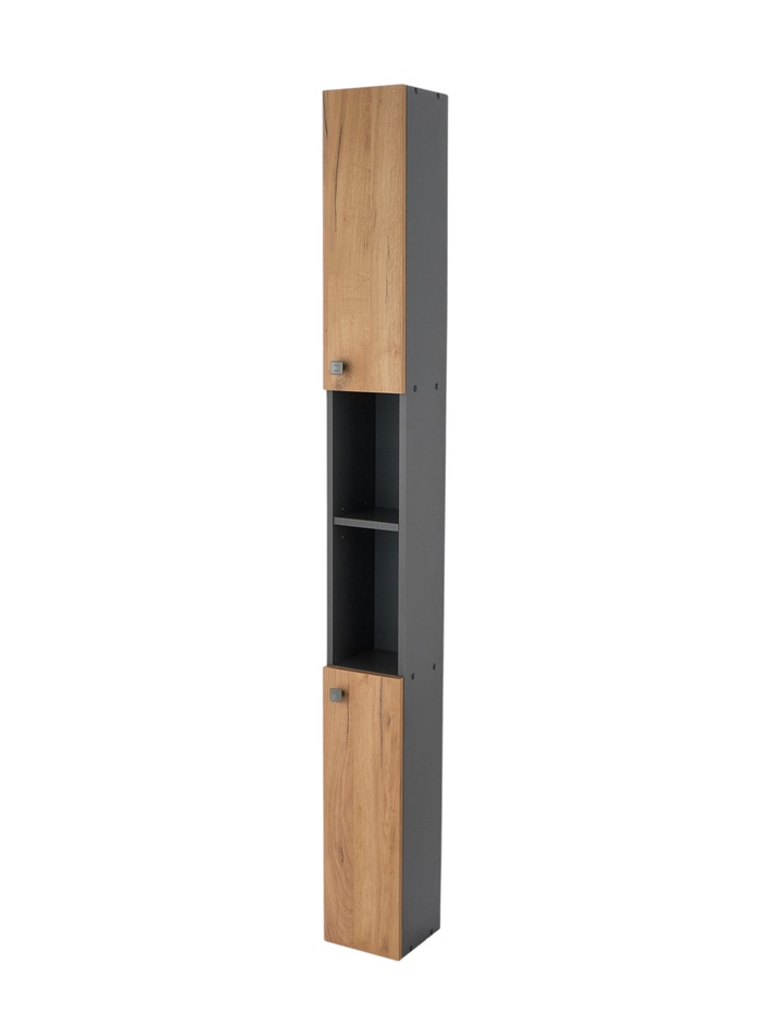 Шкаф – пенал узкий для ванной комнаты «Пронто», 2000×200×200 мм, цвет графит/дуб золотой