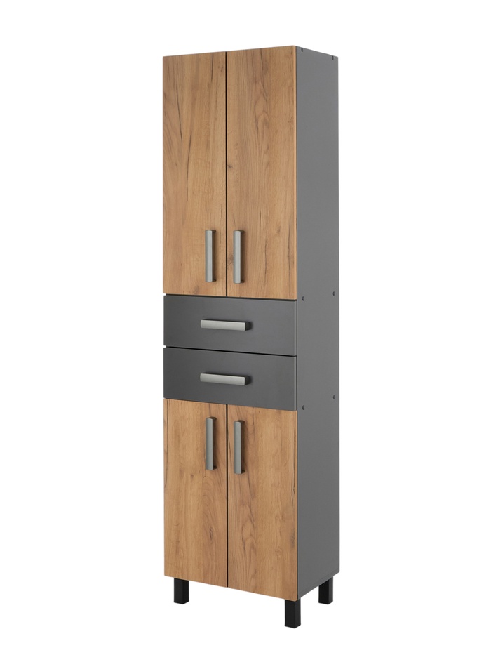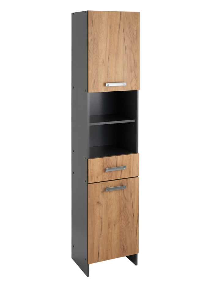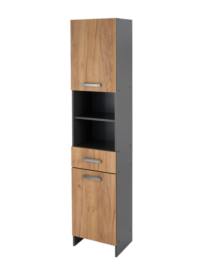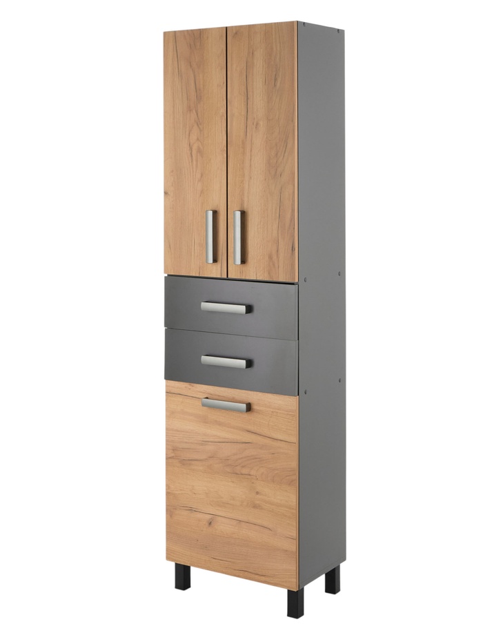 Шкаф – пенал для ванной комнаты «Пронто», с ящиками, 500×330×1850 мм, цвет графит/дуб золотой