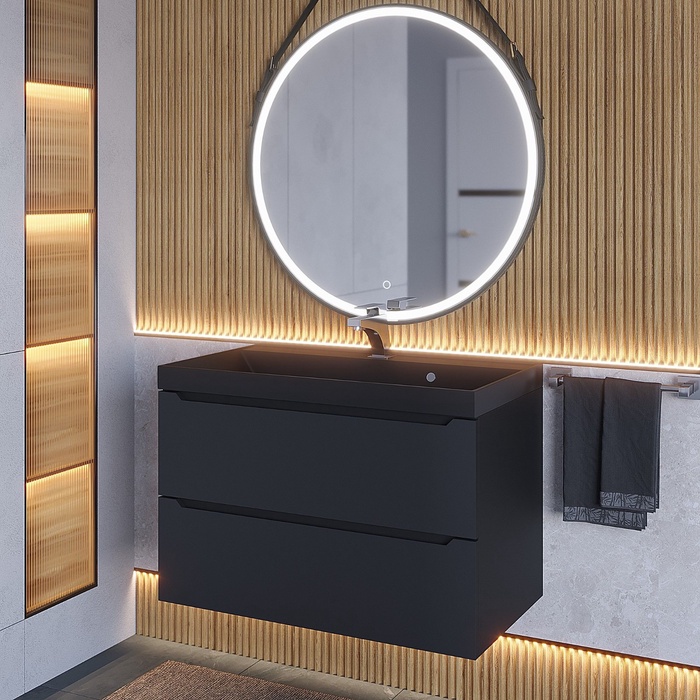Тумба с раковиной Uperwood Tanos 80 см, подвесная, черная