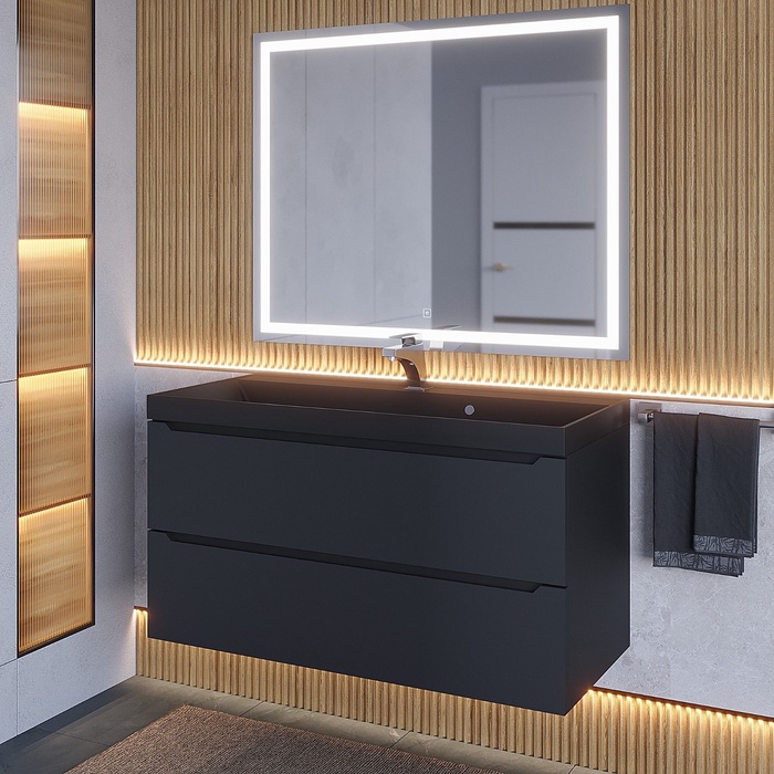 Тумба с раковиной Uperwood Tanos-Classic Quartz 100, чёрная/уголь