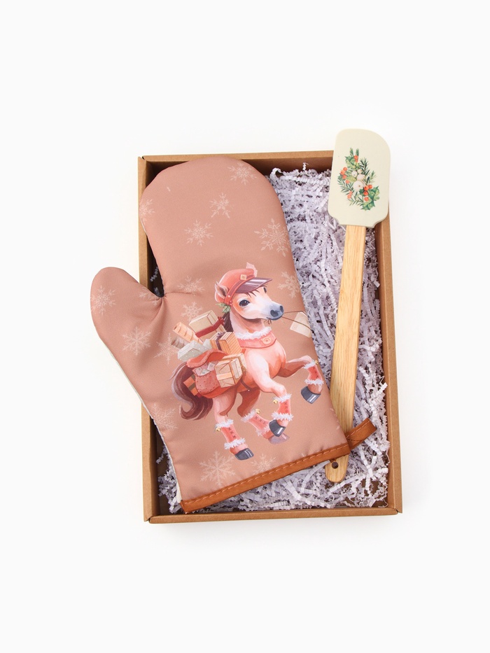 Набор подарочный "Почтовая лошадка" варежка-прихватка, лопатка силикон