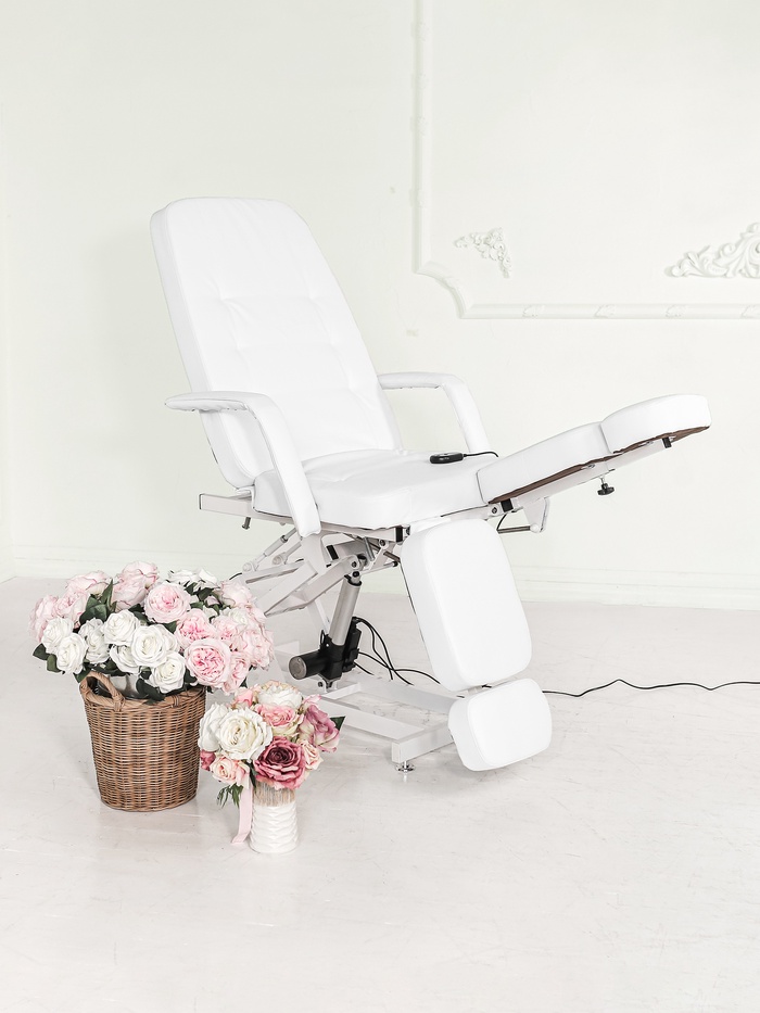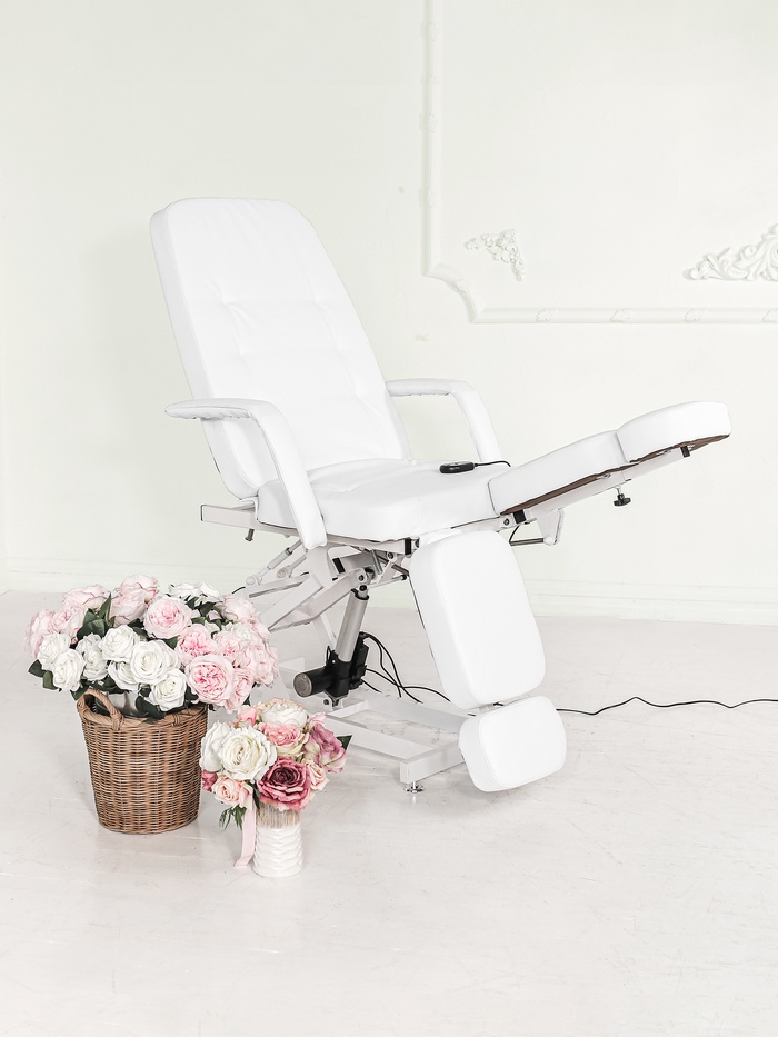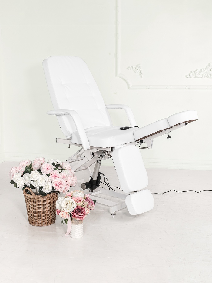 Кресло педикюрное «Элегант 1», обивка премиальная, 1 мотор, белое
