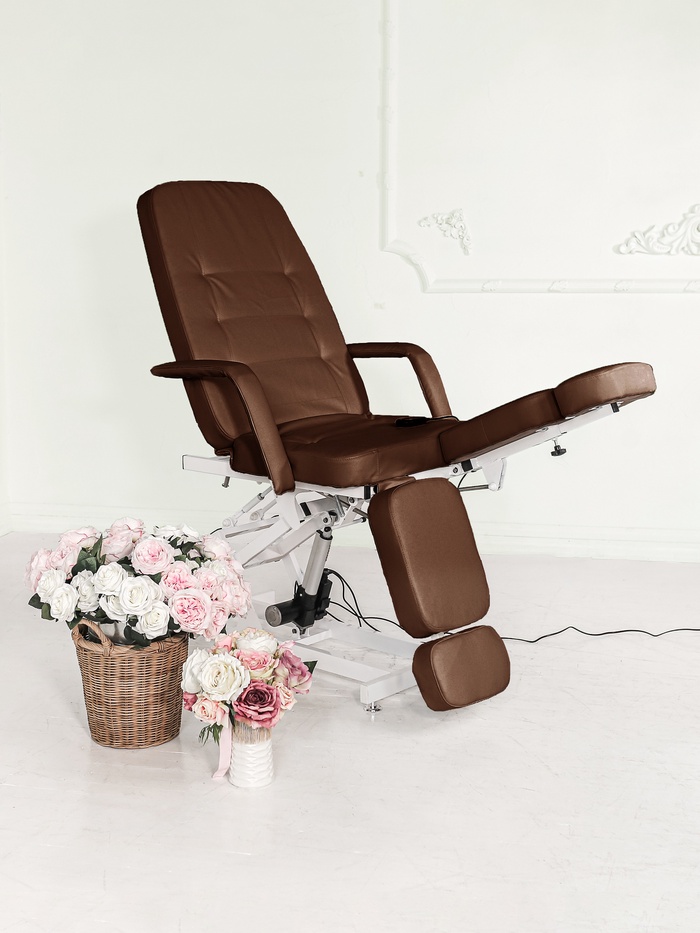Кресло педикюрное «Элегант 1», обивка премиальная, 1 мотор, коричневое