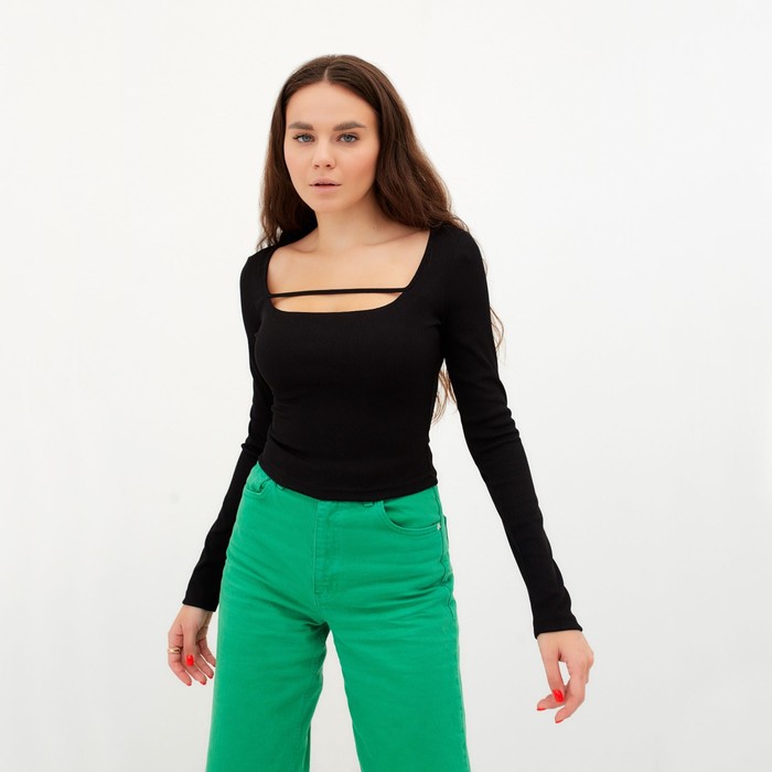 Лонгслив женский MINAKU: Basic line, чёрный, размер 46-48