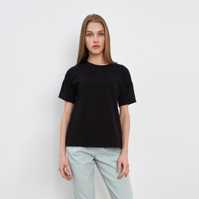 Футболка женская с круглым воротом, цвет чёрный, размер 46