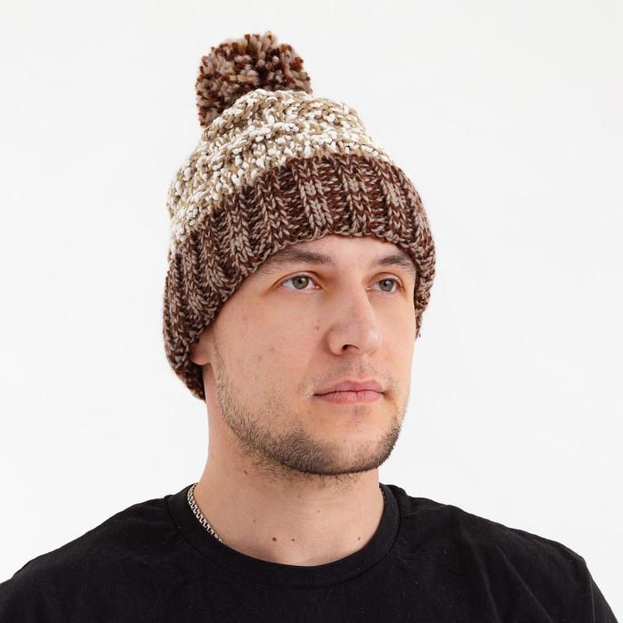 Шапка мужская MINAKU с помпоном, размер 56, цвет коричневый