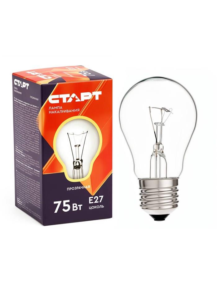 Лампа накаливания СТАРТ, Б, Е27, 75Вт, 230В