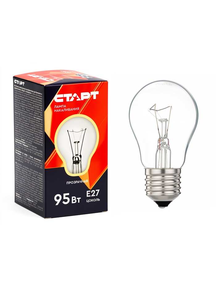 Лампа накаливания СТАРТ, Б, Е27, 95Вт, 230В