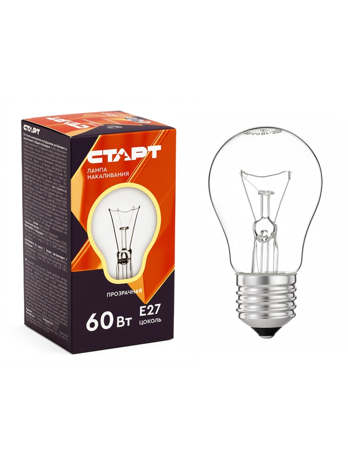 Лампа накаливания "Старт", Б, Е27, 60 Вт, 230 В