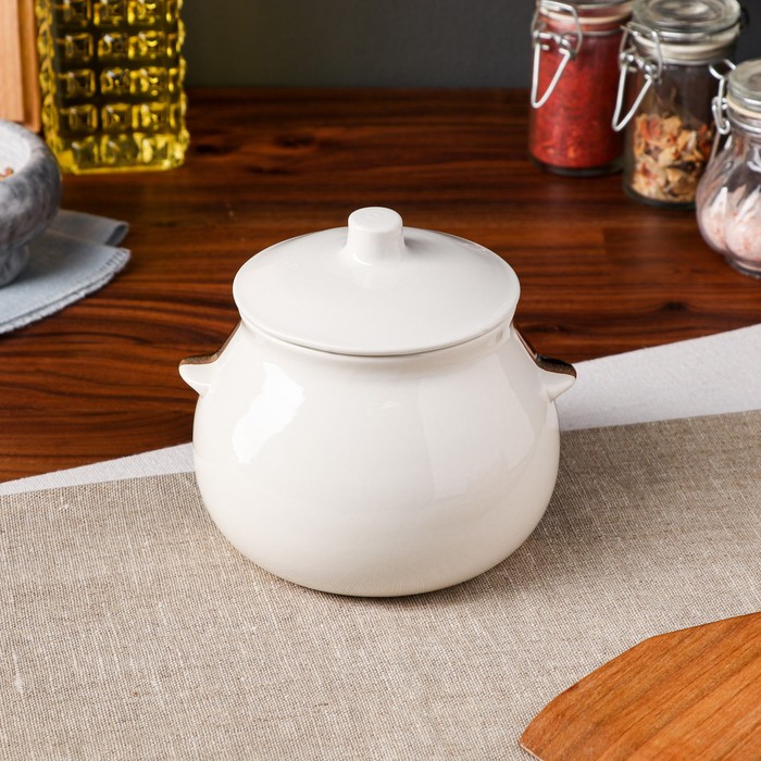 Горшок для запекания с крышкой "Капля", бело-коричневый, 0.6 л