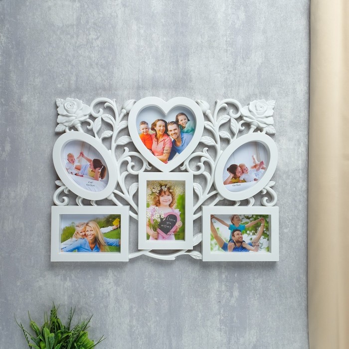 Фоторамка - коллаж на 6 фото 10×15 см, 15×15 см «Розарий», пластик, белая, 50.5×37 см