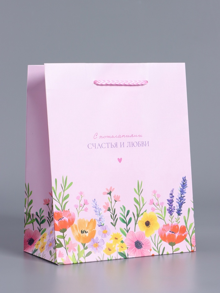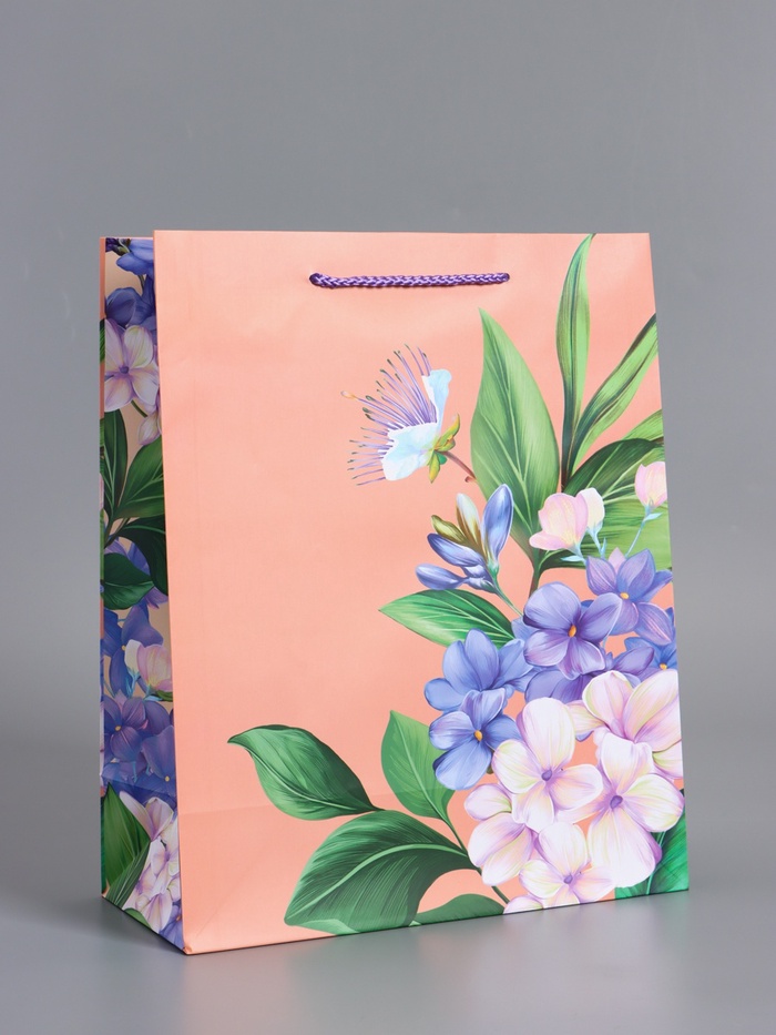 Пакет подарочный ламинированный «Полевые цветы», персиковый с розовым, 33×42.5×10 см