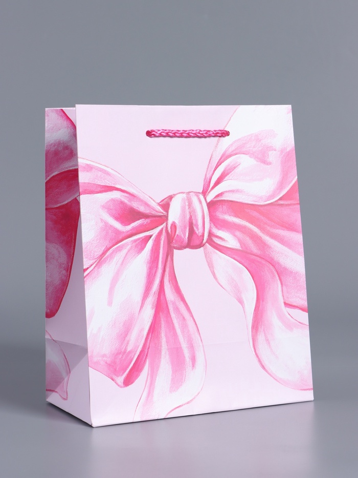 Пакет подарочный ламинированный «Розовый бант», нежно - розовый, 18×22.3×10 см