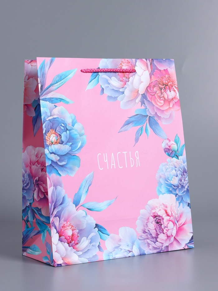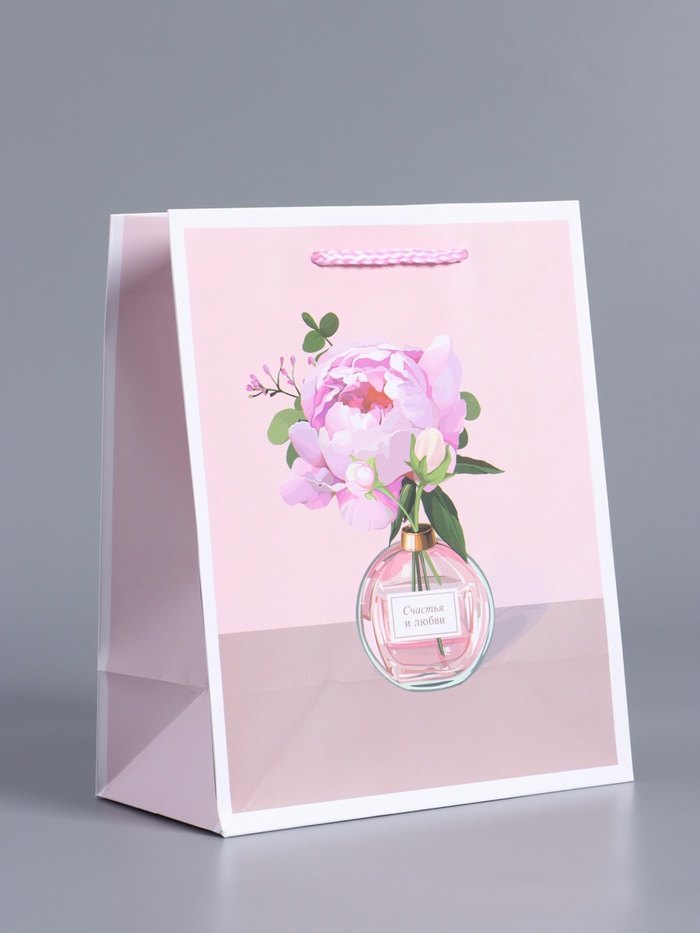 Пакет подарочный ламинированный «Бутоны счастья», розовый, 26×12×32 см
