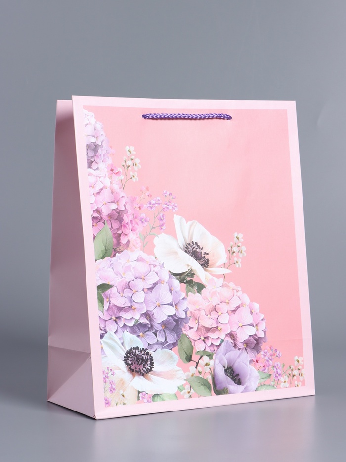 Пакет подарочный ламинированный «Цветочные мелодии», розово - сиреневый, 26×12×32 см