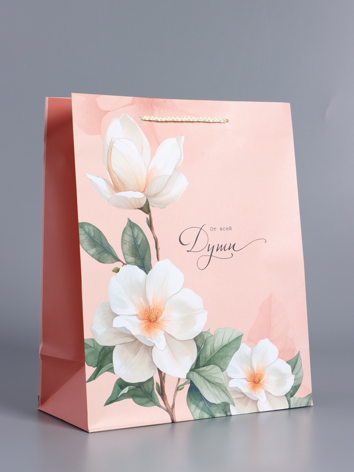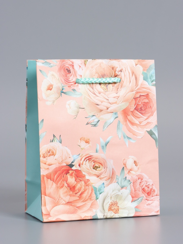 Пакет подарочный ламинированный «Цветы эмоций», персиковый, 26×12×32 см