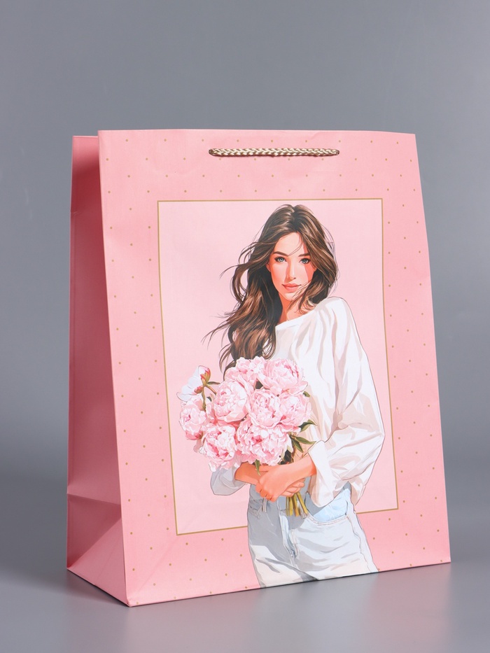 Пакет подарочный ламинированный «Букет радости», розовый, 33×42.5×10 см