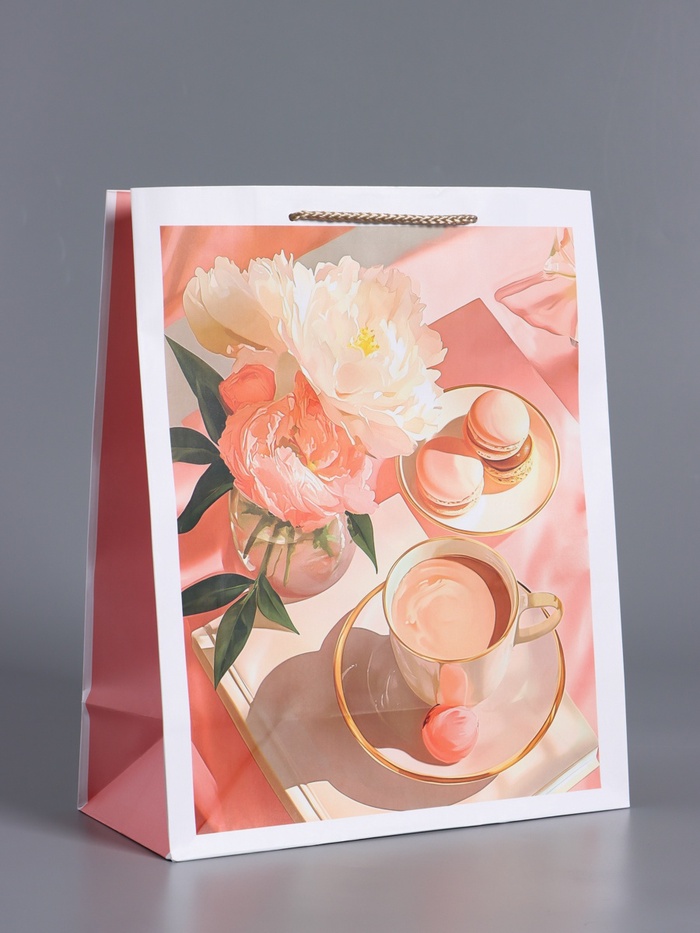 Пакет подарочный ламинированный «Утренний кофе», розовый, 33×42.5×10 см