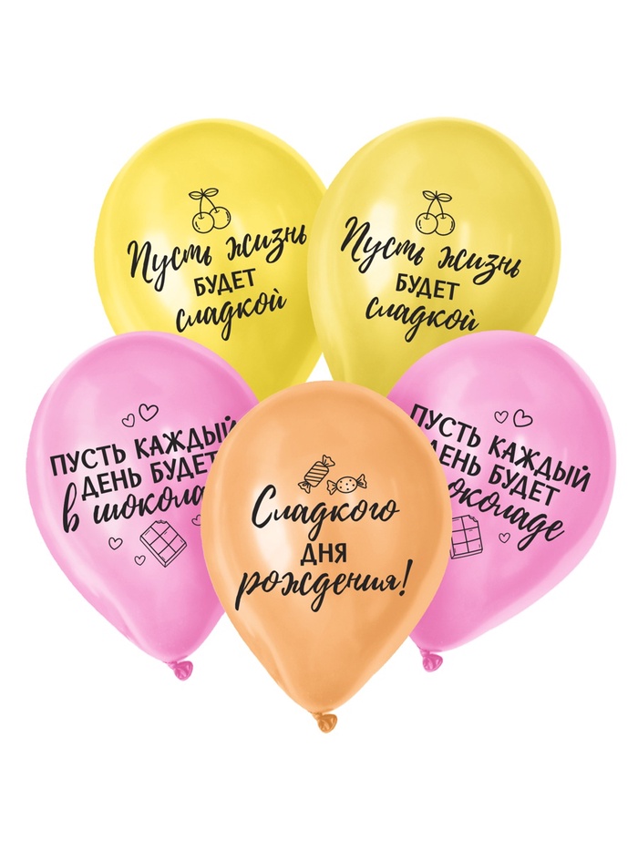 Воздушный шар латексный 12" «Сладкий день рождения», набор 5 шт.