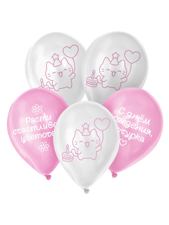 Воздушный шар латексный 12" «Милый котик», набор 5 шт.