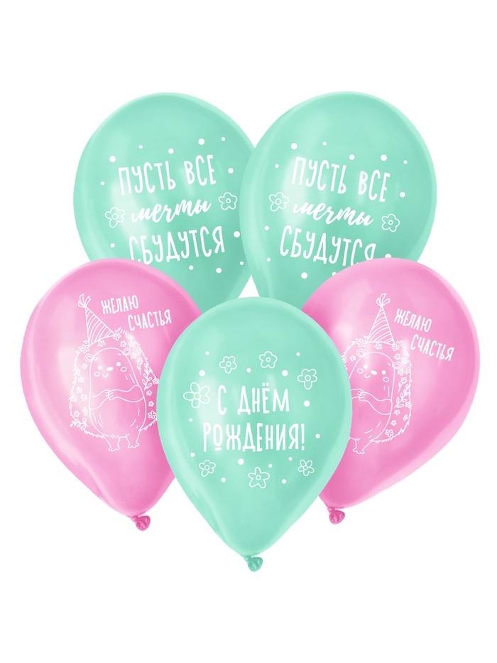 Воздушный шар латексный 12" «Ёжик с днём рождения», набор 5 шт.