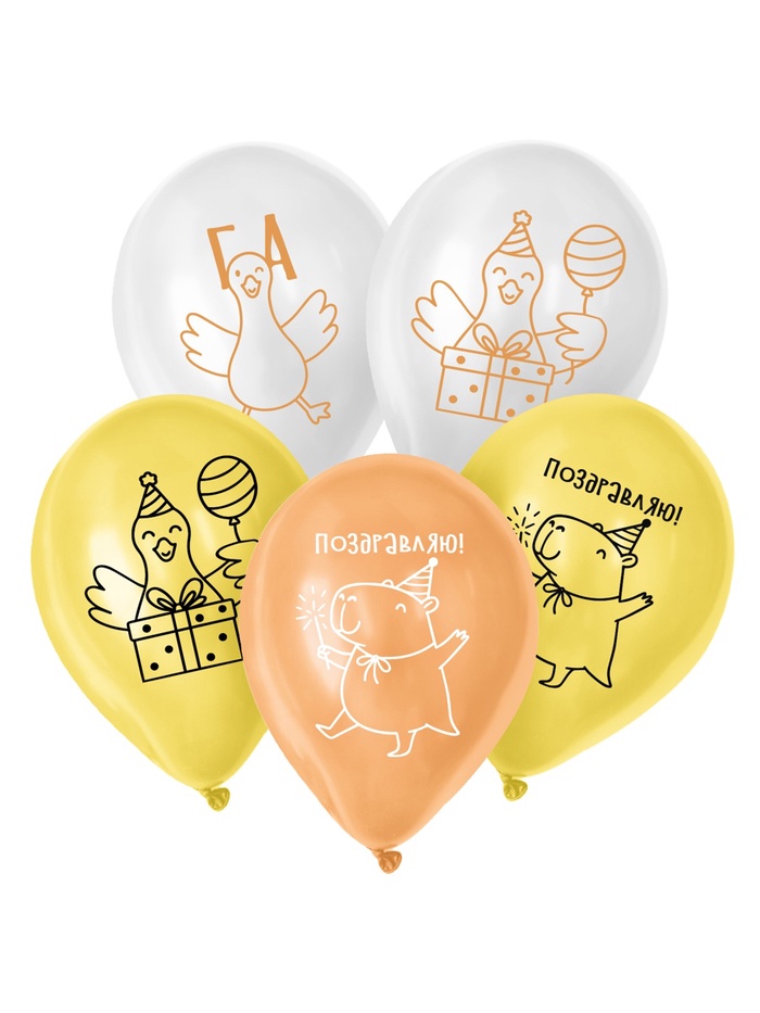 Воздушный шар латексный 12" «Гусь и капибара», набор 5 шт.