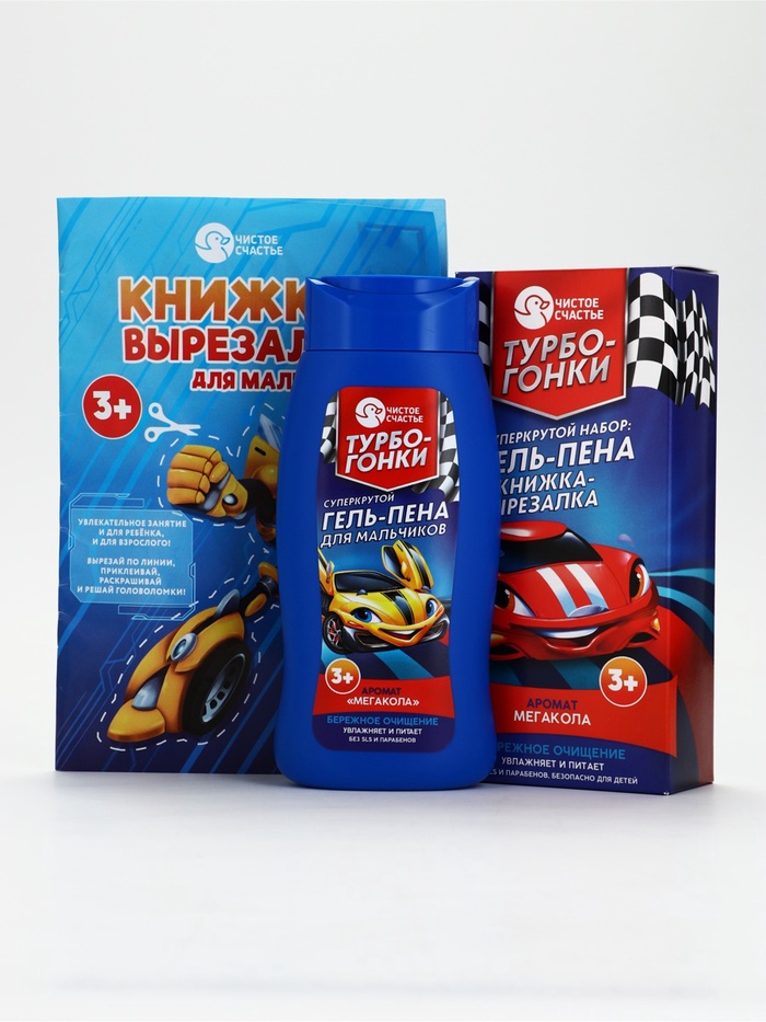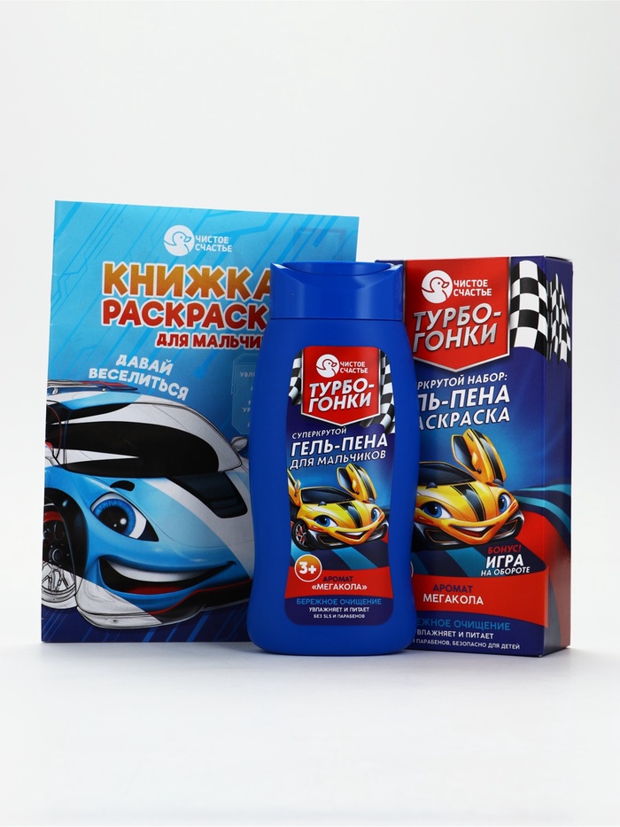 Детский подарочный набор«Турбо-гонки»: гель-пена 250 мл, раскраска А5, Чистое счастье