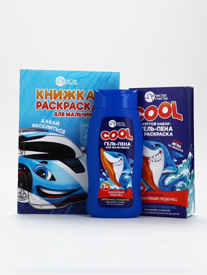 Детский подарочный набор: гель-пена 250 мл, аромат: вишнёвый леденец, раскраска А5, Чистое счастье
