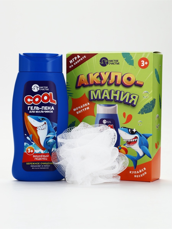 Детский подарочный набор «Акуломания»: гель-пена 250 мл, мочалка, Чистое счастье