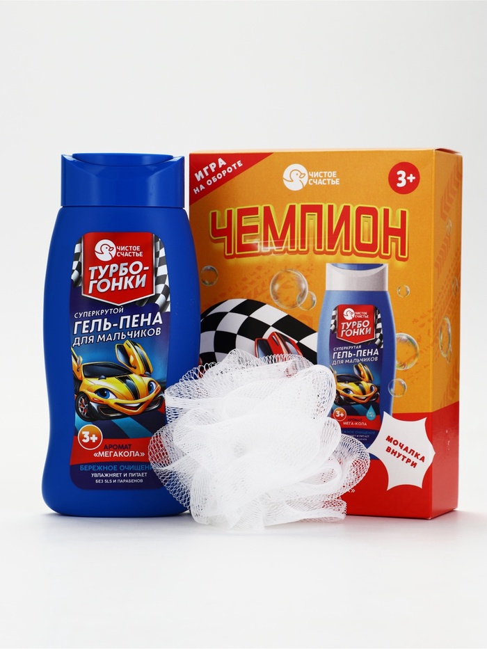 Детский подарочный набор «Чемпион»: гель-пена 250 мл, мочалка, Чистое счастье