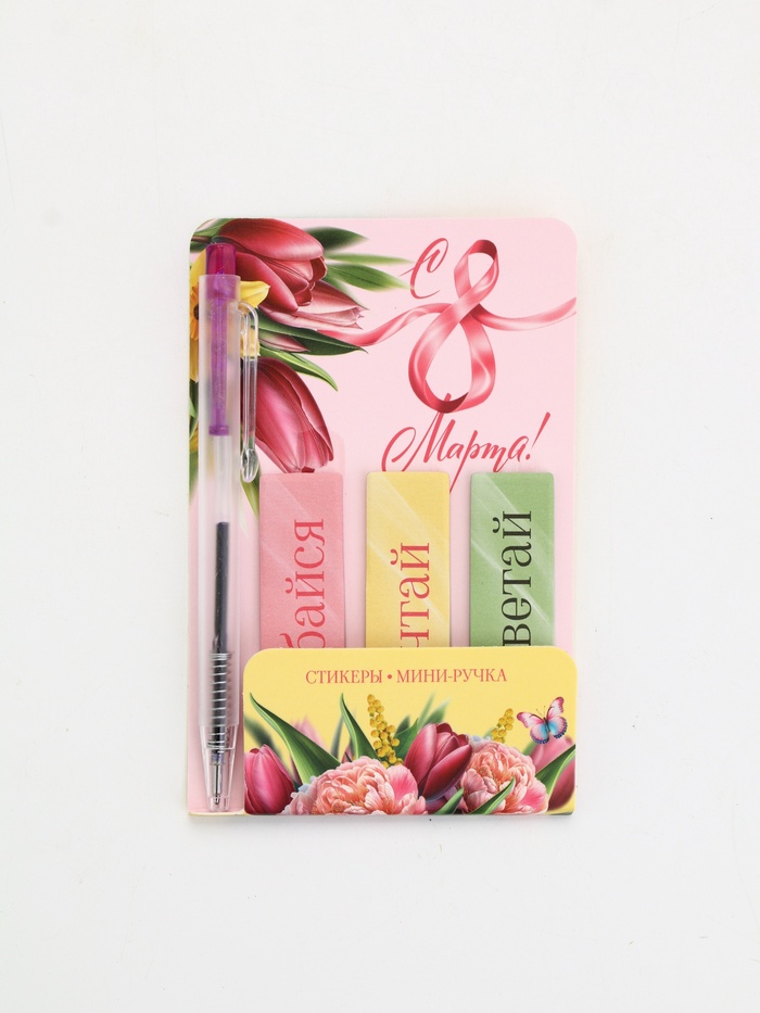 Набор "Весенний", мини ручка и стикеры-закладки 20 л