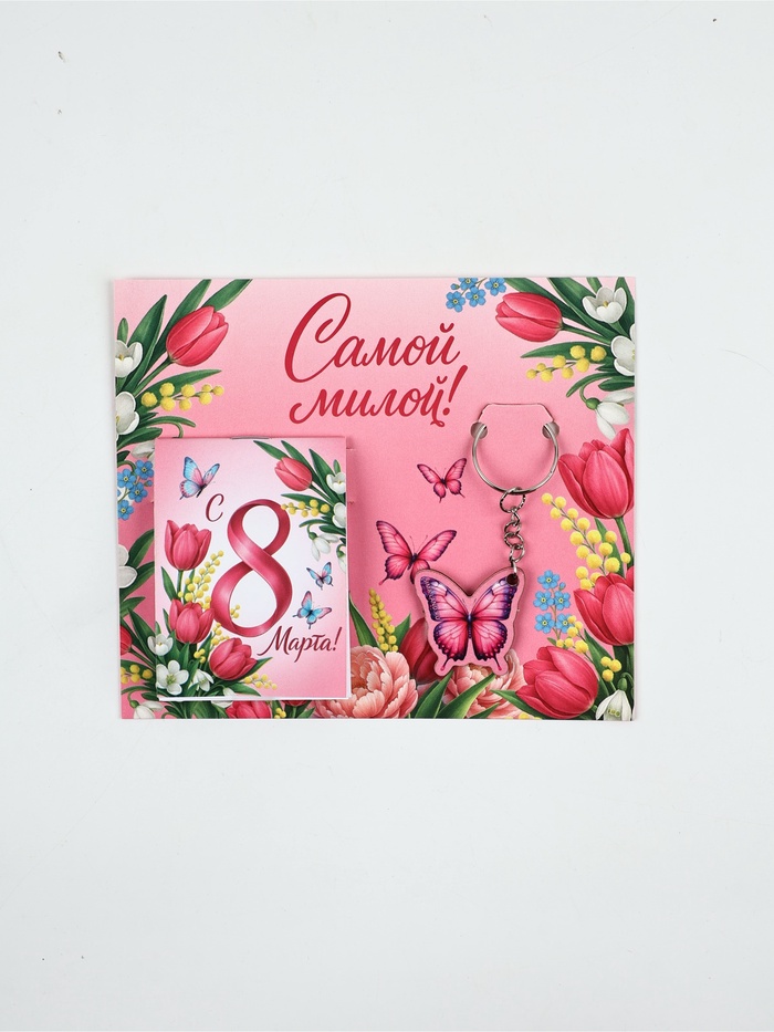 Подарочный набор: блокнот А7, 16 листов и деревянный брелок "С 8 Марта"