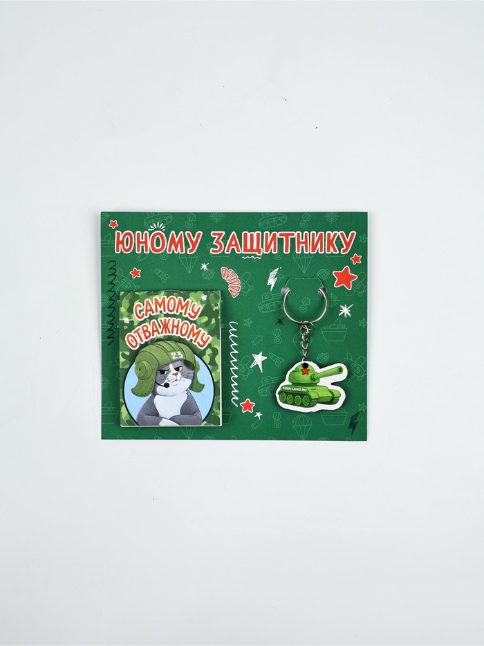 Подарочный набор: блокнот А7, 16 листов и деревянный брелок «Юному защитнику»
