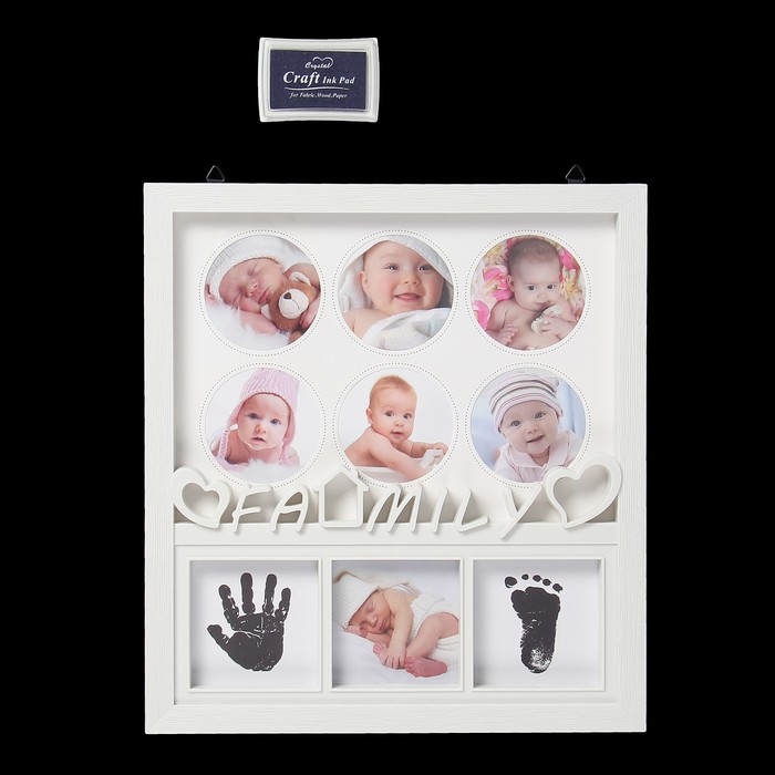 Фоторамка пластик на 7 фото 7х7, 8х8 см с штемп.подушкой "Семья" белая 36х20 см