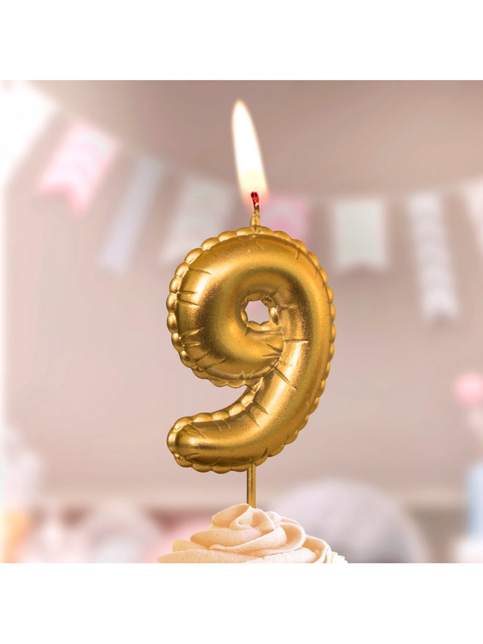 Свеча в торт на шпажке "Воздушая цифра", цифра "9", золото