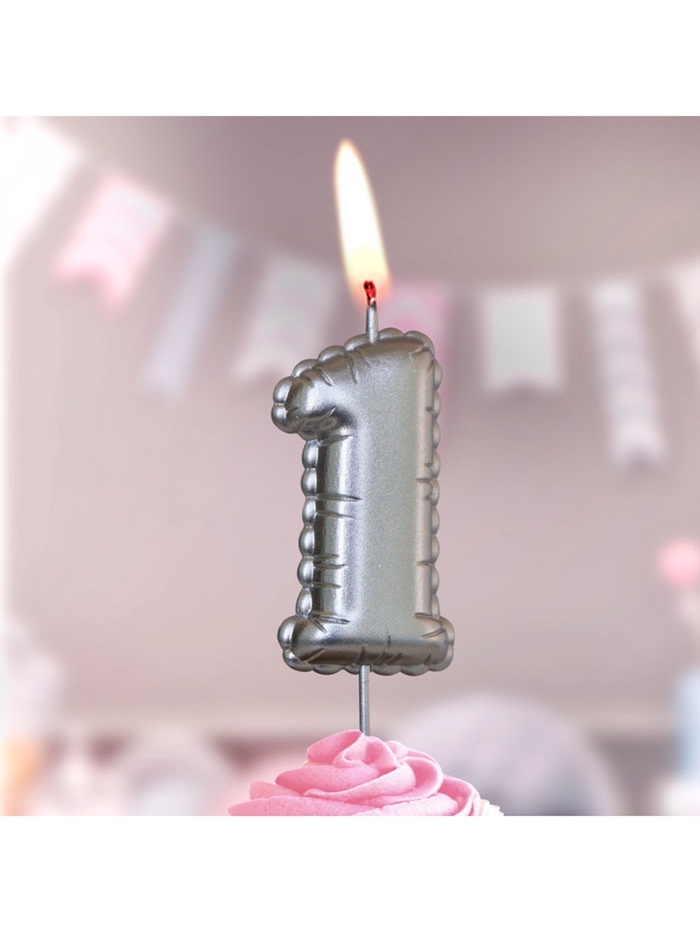 Свеча в торт на шпажке "Воздушая цифра", цифра "1", серебро