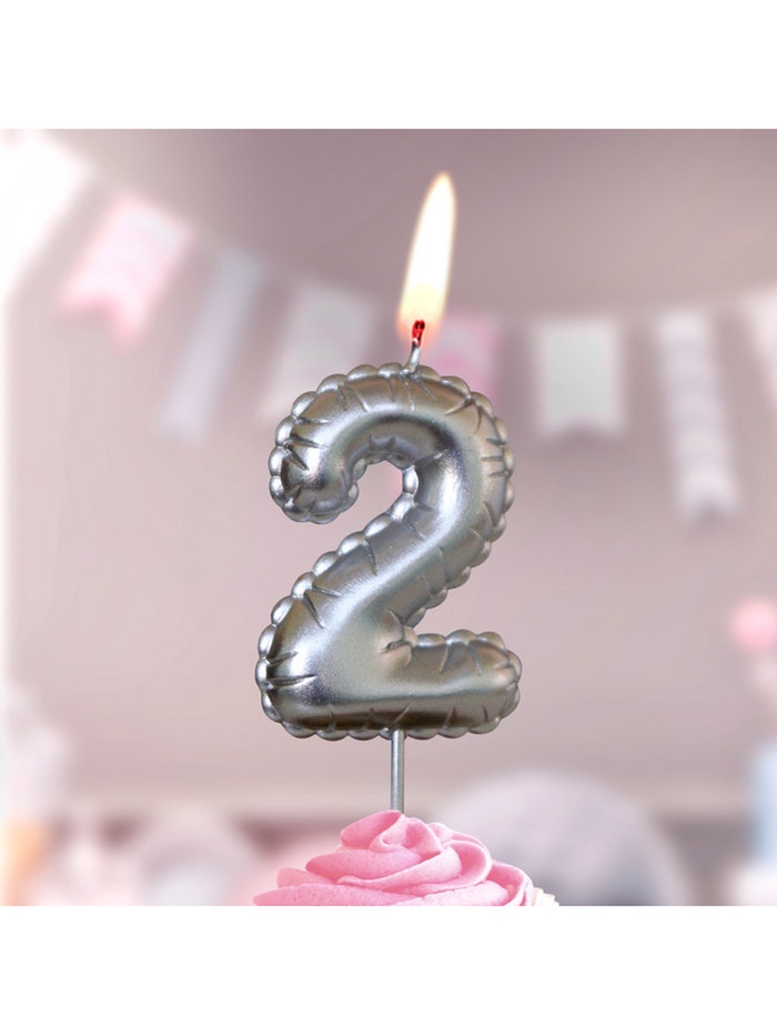 Свеча в торт на шпажке "Воздушая цифра", цифра "2", серебро