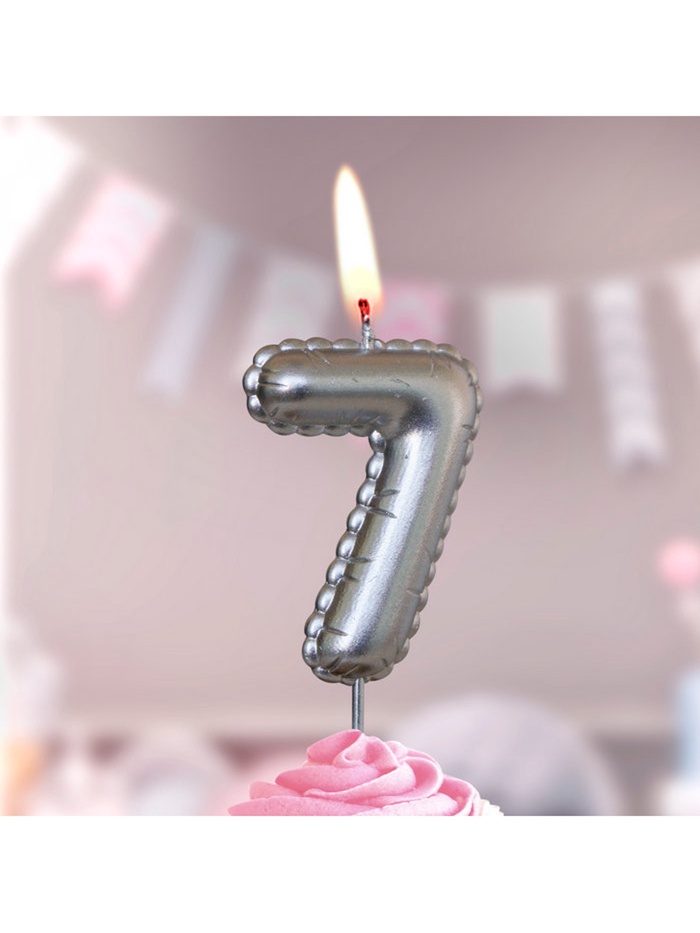 Свеча в торт на шпажке "Воздушая цифра", цифра "7", серебро