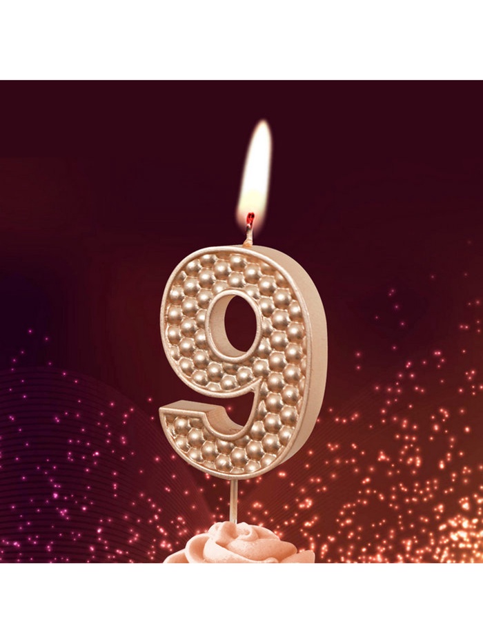 Свеча в торт на шпажке "Жемчужная", цифра "9", шампань