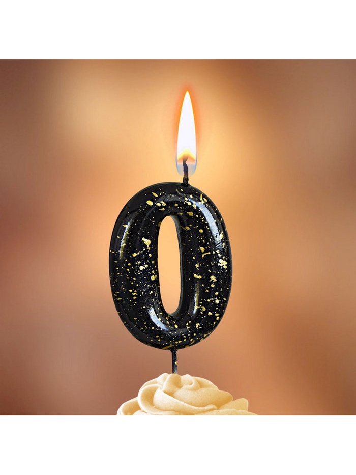 Свеча в торт "Черные брызги", цифра "0"